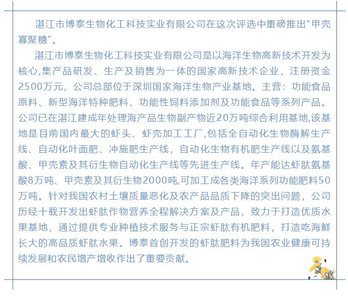 熱烈祝賀博泰公司「殼寡糖」榮獲“中國十大生物刺激劑原料品牌”年度評(píng)選前三名