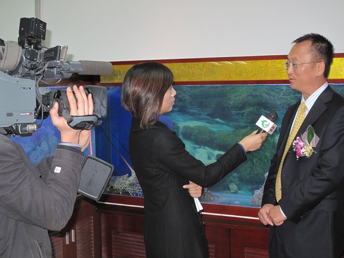 同一天,深博泰生物科技有限公司深圳公司在新落成的產(chǎn)業(yè)園內(nèi)盛大開張,公司董事長王榮輝及賈教授出席了剪彩儀式并為深博泰深圳公司揭牌剪彩。龍崗電視臺、深圳僑報等多家媒體到場報道并專訪了王榮輝董事長,王董事長向新聞媒體介紹了公司的相關情況并表示對龍崗海洋生物產(chǎn)業(yè)園及深博泰深圳公司的前景充滿信心。