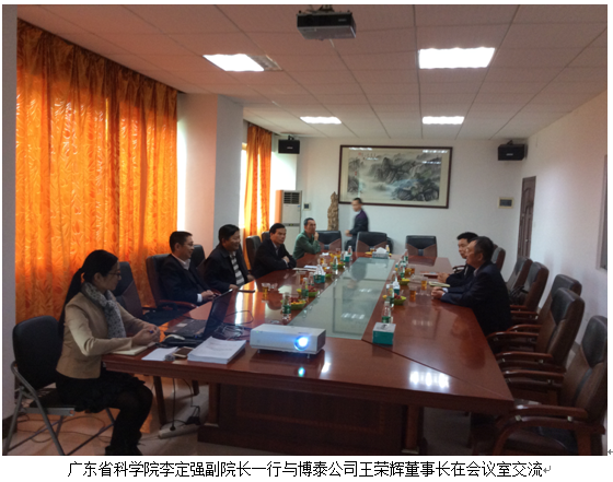 廣東省科學(xué)院李定強(qiáng)副院長(zhǎng)在湛江市科技局洪濤書記到我司商討省科學(xué)院與博泰開展院企多領(lǐng)域合作的事宜