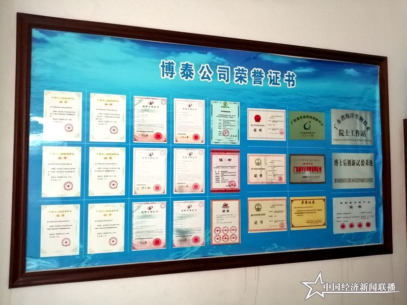 記者在一樓大廳的墻上看到滿(mǎn)墻的海洋產(chǎn)品開(kāi)發(fā)的各種榮譽(yù)證書(shū),更是對(duì)這個(gè)海洋生物產(chǎn)品前景不敢小看,同時(shí)也對(duì)這家致力于海洋生物資源研發(fā)、生產(chǎn)的博泰集團(tuán)賦予了海洋生物對(duì)土壤的重大貢獻(xiàn)敬佩不已。